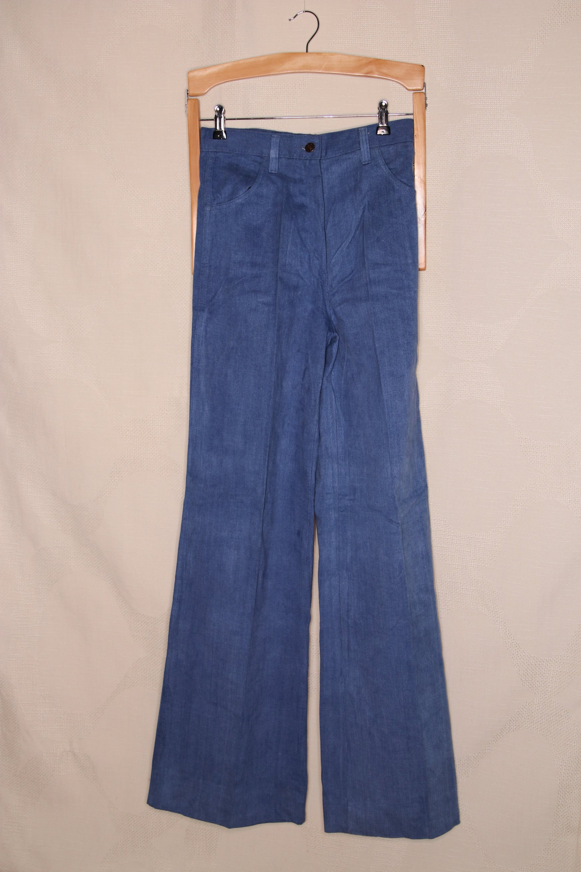 70s Light wash flare jeans with pressed crease